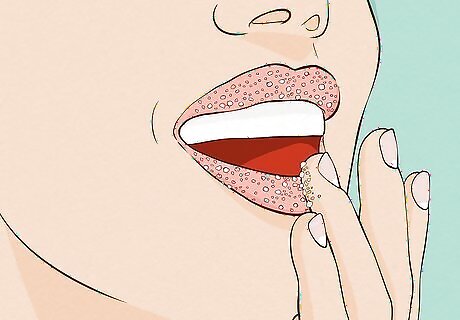 Exfoliate your lips. Just like with any other lip color, it’s important to start with a smooth base. Dry, flaky lips will make the lip powder look patchy and uneven. To exfoliate your lips, you can purchase a lip exfoliator at a beauty supply store. If you’d rather go the DIY route, you can whip up an easy batch of homemade lip exfoliator with some sugar (brown or white) and a bit of honey, coconut oil, or olive oil. Dab your exfoliator onto your lips, and gently scrub them with a clean toothbrush or your finger. Let it sit on your lips for a bit, and then rub it off with a damp towel.