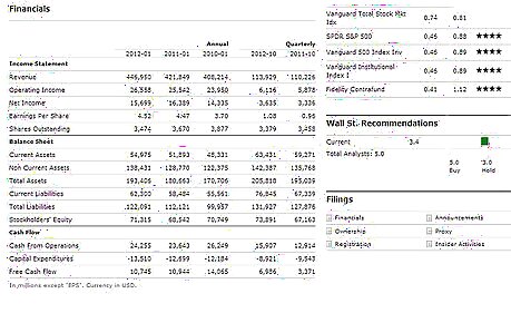 Under the Morningstar logo is a small white box titled "Quotes." Enter the symbol of a stock you're interested in. This is usually a three- or four-letter symbol (such as "AAPL" for Apple, Inc. or "XOM" for Exxon Mobil Corp.) If you don't know the symbol, enter the name of the stock. This will bring you to a page of symbols and allow you to click on the appropriate one. You'll then be shown a summary page, "Quote and News." This provides you with the latest price, market capitalization, P/E ratio, price/sales ratio and even a price/cash-flow ratio. Earlier, people used to track stocks with Microsoft Excel. Now you need not do it. Every website or broker will do two things for you. One, you can create a watch list that automatically tracks your stocks for you. And two, they will report to you on your portfolio performance. You can use your phone to look up in real-time, get a statement every month, and know your gains and losses.