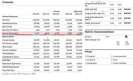 Monitor the number of shares outstanding. A solid company usually will not need to be rapidly increasing its number of shares. This dilutes the earnings of existing stockholders and may be a negative influence on stock price performance. On the other hand, a company that is reducing its number of shares may cause its stock price to increase.