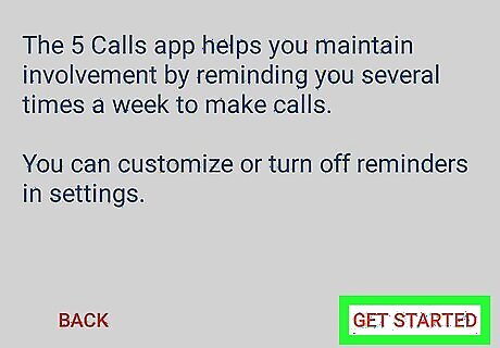 Open 5 Calls on your Android phone. It’s the blue icon containing five white stars. You’ll usually find it in the app drawer or on the home screen. 5 Calls is a free app that helps you call members of Congress about local and global issues. If you don't have the 5 calls app installed on your phone: Open the Play Store Android Google Play. Type 5 calls into the search bar and tap the magnifying glass. Tap 5 Calls in the search results. Tap INSTALL.