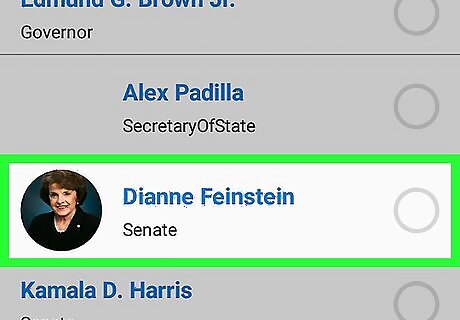 Scroll down and select a congress member. This page lists the names of the officials you should call at the bottom of the screen. Tap a name to display a script you can read to the official’s phone staff. Your area has three elected congress members: two Senators and one House Representative. 5 Calls suggests you contact all the officials listed. If you only see one or two names, it’s because this issue only requires calls to either your House Representative or your state's Senators, but not both.