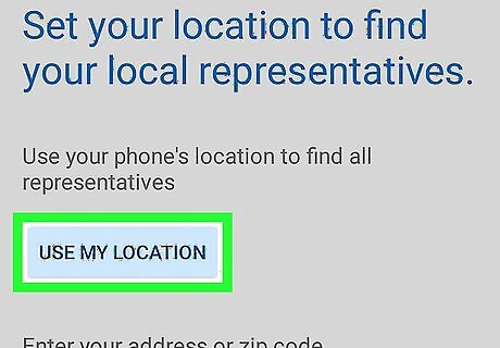 Set your location. You can set your location using your phone's GPS or enter your address manually. If 5 Calls says your location is not accurate enough to find your representatives, try using your address or Zip+4 code to narrow your location. Tap Use My Location to use GPS and then tap Allow when prompted. Tap Address or zip code to enter your address, then tap Submit