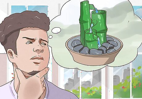 Rely on natural white noise. There are a variety of ways to create natural white noise in your bedroom when you sleep. The simplicity of these methods depends on the type of white noise you want to create. You might: Purchase a small waterfall or fountain device to place in your bedroom. It will create a running water sound that you may find very relaxing. Think about running your ceiling fan or air-conditioning while you sleep. However, remember that the air-conditioning cutting off may wake you up. You might, then, want to just turn the AC fan on. Purchase a traditional clock that is somewhat noisy. You may consider a clock where you can hear ticking has the hand moves around. Open your window to let in the sounds of the outside world filter into your bedroom.