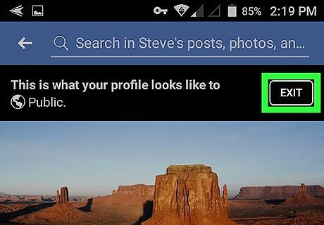 This wikiHow teaches you how to see what your Facebook timeline looks like to people you're not friends with. “View As” on Facebook for Android only allows you to see what the public sees on your profile.
