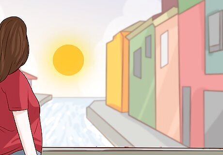 Wear clothing appropriate for the weather. Italy doesn’t have much extreme weather, but since you’ll be exploring the islands all day, it is important to dress appropriately. In the summer, Venice and the surrounding area can get up to 73 °F (23 °C), while the winter can get as cold as 37 °F (3 °C). Wear comfortable, breathable clothing that will keep you warm or cool depending on what time of the year it is. If you are going to Italy in the summer, you may get rained on. Bring an umbrella or a raincoat with you just in case. If you are visiting the islands in the summer, bring a water bottle with you to stay hydrated as you walk around.