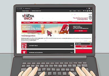 Take a water bus for your cheapest option. Public transportation is the best way to get to the islands of Murano and Burano. Water buses are public boats that anyone can buy a ticket for. Purchase a 12-hour ACTV water bus ticket and validate it at your stop before you hop on board. These tickets cost €20 ($22) per person. To purchase your tickets ahead of time, visit https://www.veneziaunica.it/en/e-commerce/services You can find the water bus timetable by visiting http://actv.avmspa.it/en/content/orari-servizio-di-navigazione-0 These water buses have stops at both Murano and Burano, so you can take them in between islands and back to the mainland. Most water buses run 24 hours a day, but they may not come as frequently during the nighttime.