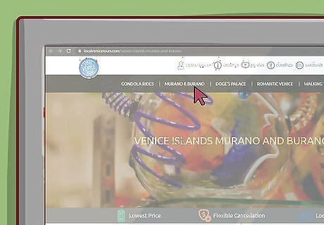 Join an organized tour for a planned trip. There are many guided tours that will take you around the islands surrounding Italy. You can sign up for a full-day tour or a half-day tour depending on how much time you have. Most tours cost about €20 ($22) per person and often include the island of Torcello as well as Murano and Burano. Search for tours and schedules by visiting this link: https://www.localvenicetours.com/venice-islands-murano-and-burano Tours are usually time-restricted and keep you on a schedule, so they may not be right for you if you like to go at your own pace. Most guided tours also take you to other islands besides Murano and Burano. Look into the tour that you sign up for to make sure you’d like to visit every destination that it takes you to.