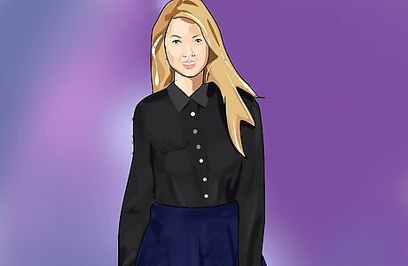 Wear a button-up shirt with denim jeans or skirts. A button-down shirt is almost always work professional. If you opt for denim jeans, or a denim skirt, a button-up shirt will make your look professional while allowing you to embrace denim. Make sure your shirt is work professional. Stick to neutral, business-like colors. You can add a tie to your shirt for extra professionalism. If you're not into button down, a business appropriate blouse can also work.