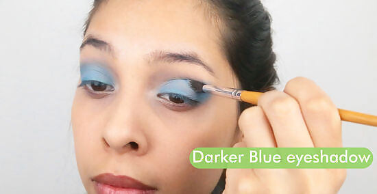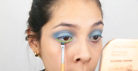 Apply a darker shade to your crease. For your eyelid crease, opt for a darker shade of your base color that is still in the spectrum of cool pastels. For example, go for a slightly darker blue, pink, silver, or gold. Use a larger, puffier brush to apply the shadow to the crease between your brow bone and eyelid. Make gentle, circular motions as you apply the shadow to your crease. Apply it across the full line of your crease for the best results.