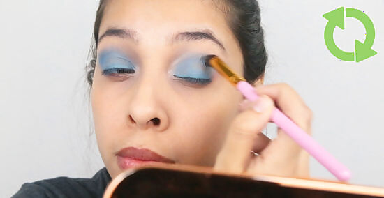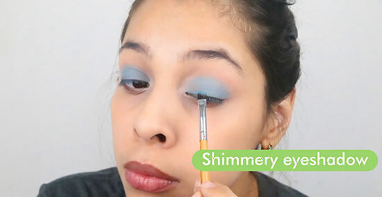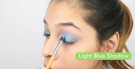 Blend everything with a clean brush. Take a clean brush. Use this to gently blend all your eyeshadow together. Do not blend to the point the colors smear, but blend so each color fades into the other color. This should form a gradient, frosty effect across your eye.