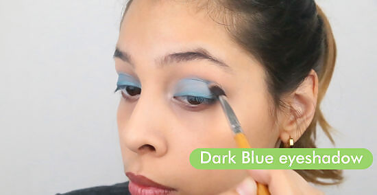 Create depth with a second dark tone in your outer lid. Take a second darker tone, such as an even darker midnight blue, dark pink, dark silver, or dark gold. In your outer eyelid, dab this shade onto your lid. Make a small triangular shape with the shadow on the outer corner of your eye.