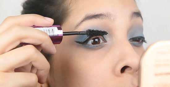 Add a light layer of mascara. You do not need a lot of mascara for this look, as the primary effect is your frosted eyeshadow. Add a single layer of mascara to your eyelashes to bring them out slightly.