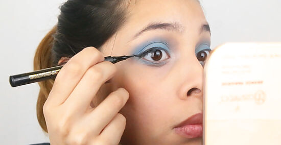 Apply a small line of eyeliner. Keep eyeliner minimal with this look, as the attention should be on the gradient effect of your colors. Take liquid or pencil eyeliner and use it to draw a very small, thin line running across your upper lash line. Get as close to your upper lash line as possible when drawing the line. If you want, you can apply eyeliner to your waterline as well.