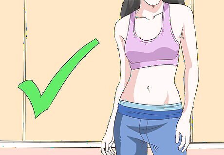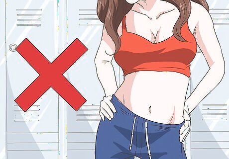 Be modest. If you are meditating in a class or group environment, your clothing should be on the modest side. Avoid any low cut tops or tops with loose necklines or collars. Make sure your top is long enough to cover your torso no matter what position you are in. In a group setting, your clothing should not be a distraction to the other people that you are around either.