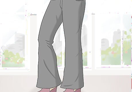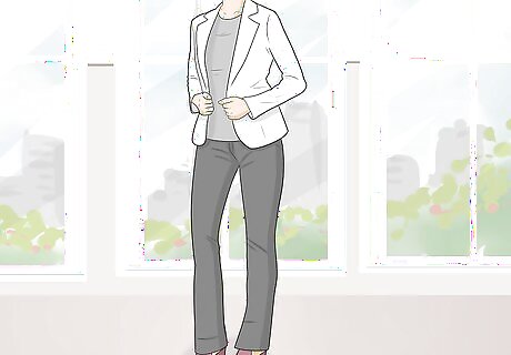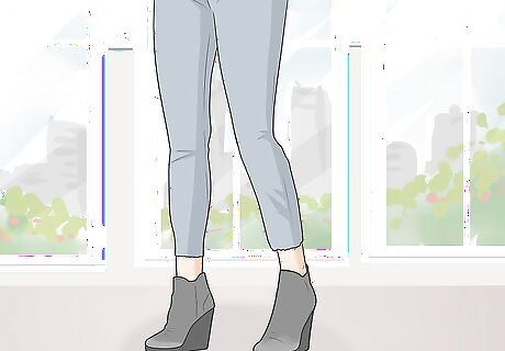 Wear black pants, a blazer, and wedges for a professional look. This look copies traditional menswear with the dark pants and the blazer and adds a feminine touch with the wedge boots for a well-rounded look. This is a great option for people looking for a professional outfit, but who want to avoid the hyper-feminine option of a pencil skirt. Wear a white silk blouse or a colored top to add some softness and color to the outfit.