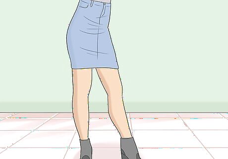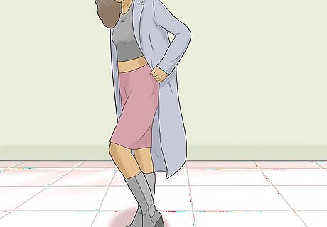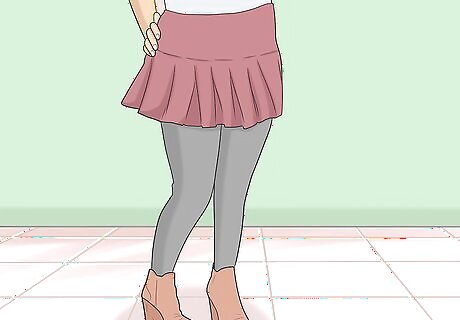 Wear wedge boots with tights and a miniskirt. This is an easy, cute look for date-night or just around town. The wedge boots give your legs a little extra length, which looks cute with shorter skirts. You can wear cabled or sweater tights in the winter, or slightly sheer black tights in the fall. Tights are also a good way to create contrast if your boots are a similar color to your skin. This is a great look if your boots come up higher than ankle boots.