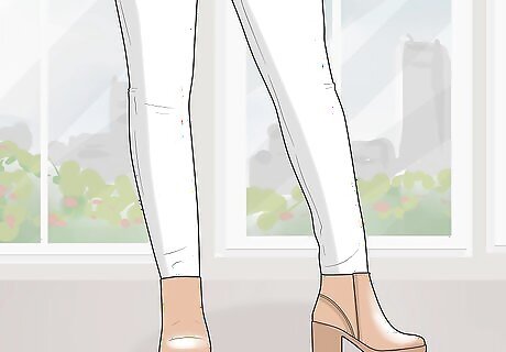 Pair white jeans with brown wedge boots for some breezy style. You can either cuff the jeans or tuck them into your wedge boots. Wear this with a solid, neutral top for a classic look, or mix it up with a colorful cardigan. This is a great look if you want to experiment with a bold top, sweater, or poncho. The white jeans and brown wedges are simple enough that the outfit won’t be too busy for your showcase item.