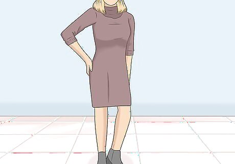 Wear a sweater dress with wedges for some cozy cuteness. A sweater dress is a great thing to have on hand for when the weather gets chilly. Wedge boots elevate the look from “I’d rather be on the couch,” to “I look super cute and cozy.” Form-fitting sweater dresses are super stylish. Layer with a long, colorful cardigan for a casual look.