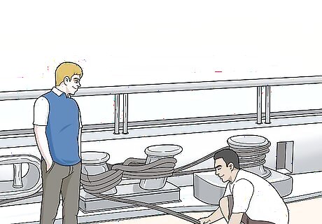 Find a position as a junior deckhand if you don’t have any experience. If you’ve never worked on a yacht and have little to no experience with boats or watersports, finding a job as a junior deckhand is a great place to start. While working as a junior deckhand won’t earn you a large salary, you will have the opportunity to gain valuable hands-on experience and learn the ins and outs of the yachting business. Junior deckhands generally have a good work ethic, positive attitude, ability to learn on the job and follow directions, a professional appearance, and work well with a team. Junior deckhands are responsible for cleaning, polishing, and waxing the yacht, assisting the bosun and first mate with maintenance, and helping with general yacht operations, including line handling, navigation, passenger safety, and water sports. Junior deckhands make approximately $27,000 per year.