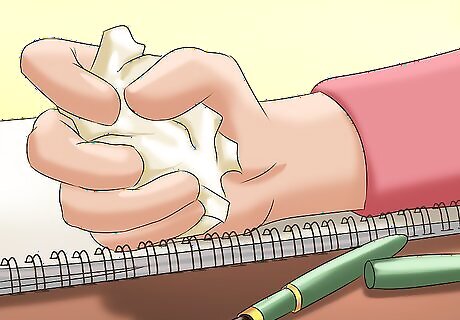 Ball up a piece of paper with one hand. Using only one hand the entire time, crumple up a piece of paper into a ball and then smooth it back out again. This works on developing hand strength.