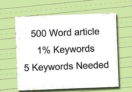 Decide on the density needed for each article. If writing these articles for someone else, they may have a density requirement for each keyword that you need to meet. Most webmasters want a frequency of at least 1% per article, which averages out to five uses of each keyword when writing the average 500 word article.