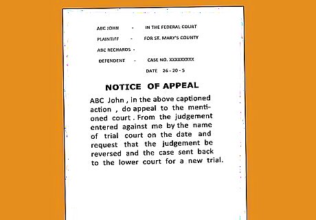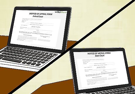 Find a Notice of Appeal form. Many courts have pre-printed forms which you can fill out and file as your Notice of Appeal. Even if your court does not have a pre-printed form, you can use one as a model for creating your own. There are many examples on the internet of forms for federal and courts.