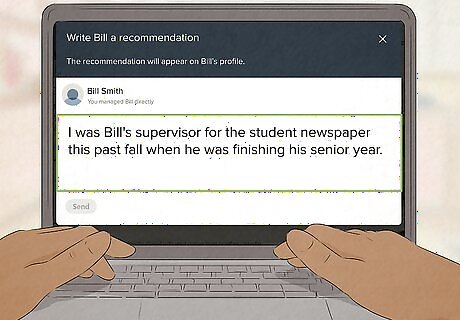Follow the prompt. A prompt will then walk you through the recommendation. You will be asked to fill in basic information, such as how you know this person and where you worked together. Then, there will be a text box where you can write your recommendation.