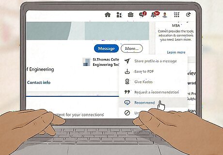 Click the ellipses icon on their profile. It's to the right of their profile picture near the top of the page. This icon will create a drop down menu that will provide what you need to write a recommendation.