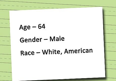 List all relevant personal information about the patient such as age, gender, and even race. While they often appear trivial, these issues could play a part in the treatment plan as well as determining the severity of the problem.