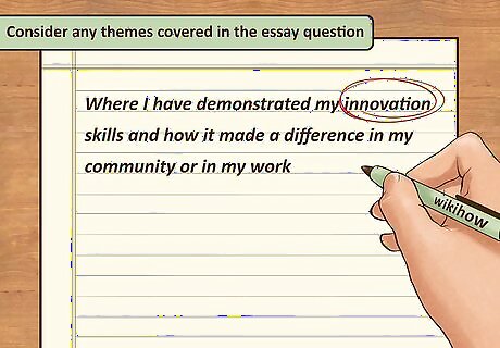 Consider any themes covered in the essay question. Does the essay question specify themes such as innovation or nonprofit leadership? If so, be sure to focus on these, at least in part, in your essay.