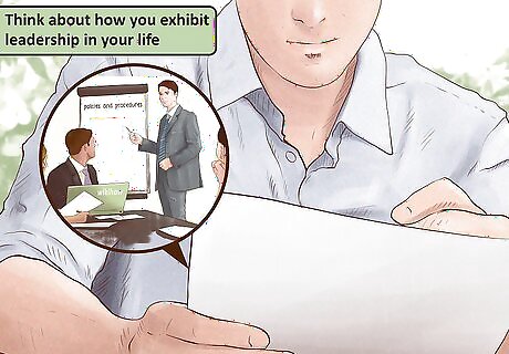 Think outside the box when contemplating leadership. You don’t always need to be in charge of something to exhibit leadership. For children and young adults, leadership can be shown by helping people, making the right choices, and being independent. You may have shown leadership in your neighborhood by helping older neighbors with yard work or organizing games for kids after school. Another way you could have shown leadership is in your own family. Maybe you helped care for a younger sibling while your parents were working or taking care of an elderly relative, or you took on more responsibilities around the house during a difficult time. You may have demonstrated leadership at school. Did you confront a bully for a classmate? Did you help tutor a friend after school?