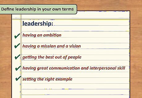 Define leadership in your own terms. Now that you’ve researched the topic, think about what it means to you. Are you inspired by the ambition and risk-taking of good leaders? If so, focus on those in your essay. Maybe you are more interested in the fact that good leaders are knowledgeable of their mission and have a strong vision of how to attain it. You can highlight these traits in your essay. Don’t forget that good leaders also exhibit strong communication skills and are comfortable delegating duties to a dedicated team. Write about these characteristics in your essay as well.