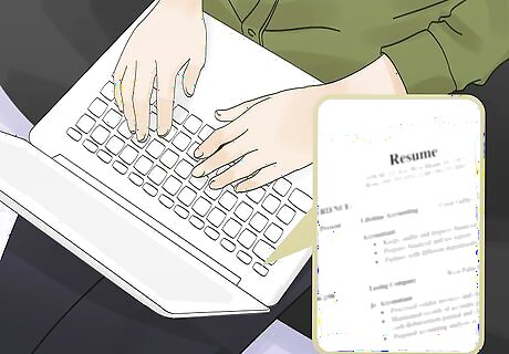 Update your resume. You'll want to submit a resume with all relevant writing experience. If you’ve been publishing, include your pieces. If you’ve presented at a writing conference, include that. If you've done any work that is related to writing, make sure you feature it prominently on your resume. Complete any education requirements, as possible. Some writing positions require a degree in journalism or a related field. However, not all jobs require this, and if you establish your reputation as a good writer, you can sometimes get a job as a staff writer. Chances are though, you’ll need a lot more experience than you would if you had a bachelor’s degree in order to get a similar position.