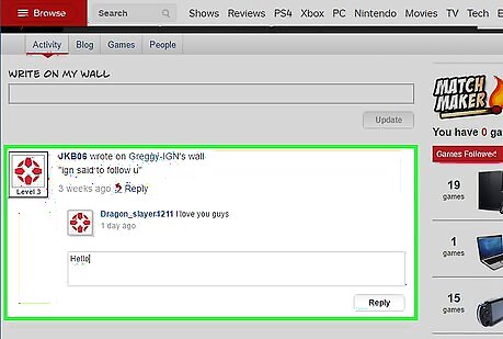 Interact with other people. You have the ability to private message and communicate directly with other My IGN users from your account. Adjust these settings to suit your personal safety preferences. For example, you may want to allow anyone to message you, or you may want to restrict messages to followers who you also follow. The more interaction you have with other users, the more interested and supportive they'll be of your posts. Don't necessarily think about it in those terms, though. Just relax and have fun talking to other gamers.