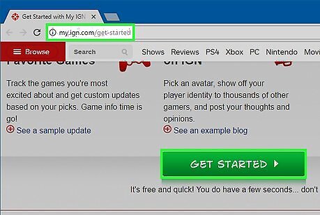 Go to the My IGN website. When you point your browser toward http://my.ign.com/get-started, you'll see a large green button that says "get started." Click that button to start setting up your account. You'll be prompted to choose a user name, and provide an email address and password. Choose a user name that you think best identifies you as a gamer.