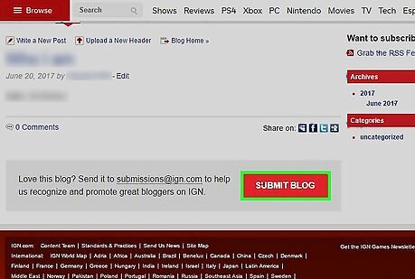 Submit your blog. At the bottom of each blog post, you'll see a big red button that says "submit." Clicking this button will pull up an email client so you can send an email to IGN staff asking for your blog to be featured. Use the email to briefly sell yourself and your blog post. Talk about what makes it (or you) special, and why your post deserves to be featured. You'll receive an email notification if your blog post is selected to be featured on the IGN homepage.