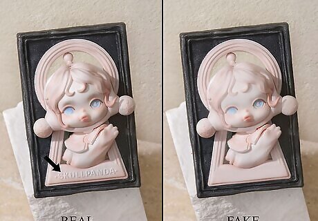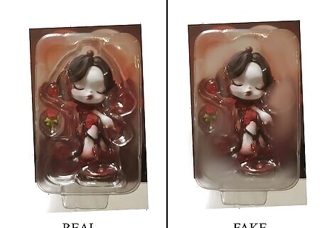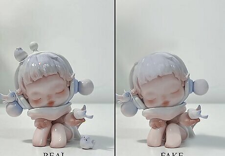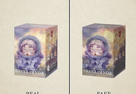 Packaging Before you even open a Skullpanda figurine, take some time to examine the box. An authentic Skullpanda will have both Skullpanda and POP MART branding on the box. The box should also feel high quality, with a slightly matte texture. Some series may have embossed lettering or metallic foil on the box. A fake Skullpanda may come in a box that feels slick and glossy. The printing may be faded or uneven, or the colors may be wrong. The box may have been previously opened and taped shut. An authentic Skullpanda will come inside a sealed plastic or foil bag. Fake Skullpandas may come in an opened bag or a bag with incorrect branding on it. Real Skullpandas often have an identity card or other branding inside the box, as well.