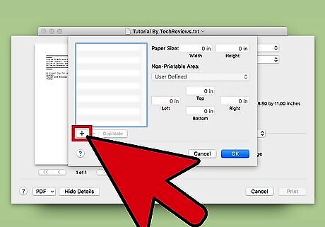 - If you want to make a custom page size for something you're printing, go to "File > Print > Show Details > Paper size > Manage Custom Sizes > +" and create the new page size.