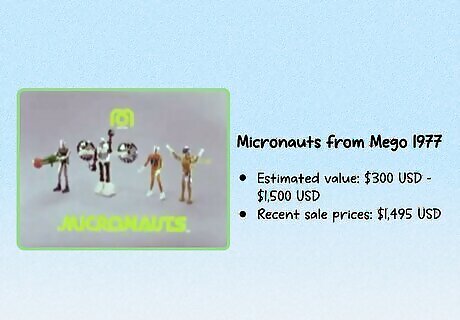 Micronauts figurines Micronauts were small action figures that were a lot more posable and movable than others at the time. Because they had a futuristic sci-fi theme, Micronauts developed a big fanbase in the '70s, and collectors are still looking for figures to complete their sets. Estimated value: $300–1,500 USD Recent sale prices: $1,495 USD