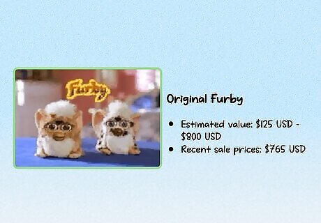 Original Furby Furbys are some of the strangest toys on this list: they look like a mixture of a bird and a teddy bear. While you probably remember Furby the most for being a little creepy and turning on by itself at times, people are still willing to pay a lot for the originals. Estimated value: $125–800 USD Recent sale prices: $765 USD