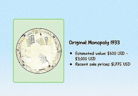 Original Monopoly The oldest known version of Monopoly game sold for a whopping $146,000 USD at an auction. While the later prints of this game won’t go for quite as much, the classic release of the game is still sought after by both collectors and board gamers. Estimated value: $600–3,000 USD Recent sale prices: $1,775 USD