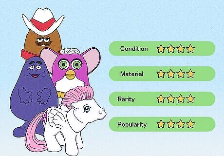 Look up the selling prices of similar items online. Hirsch recommends doing your research and doing a basic search for the item on marketplaces like eBay or auction sites. She says, “Look for similar items, compare their conditions, and see how much they sold for” so you can get an idea of how much your toys are worth.
