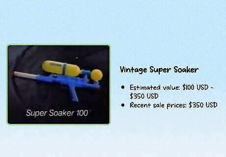 Vintage Super Soaker When you think of water guns, Super Soakers are one of the most popular brands out there. These water guns have striking designs that stand out from the crowd, and the classic versions are still desired by collectors who want to add them to their arsenal. Estimated value: $100–350 USD Recent sale prices: $350 USD
