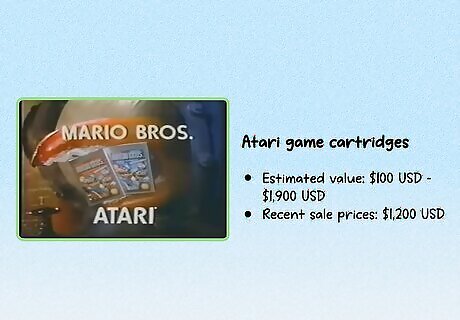 Atari game cartridges The Atari is one of the original video game consoles that you could get. While classics like Pong, Breakout, and Asteroids are pretty common, some of the more obscure games are rarer and sought after. Estimated value: $100–1,900 USD Recent sale prices: $1,200 USD