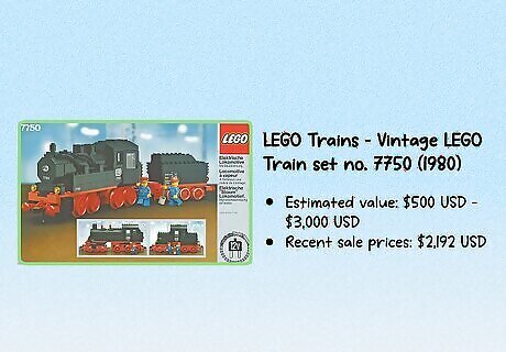 LEGO Trains The vintage LEGO Trains let you build railways and model trains that you can run around the tracks. LEGO collectors and train enthusiasts both look for old sets of LEGO Trains to add to their collection, and they’re willing to spend a bit of money to do it. Estimated value: $500–3,000 USD Recent sale prices: $2,192 USD