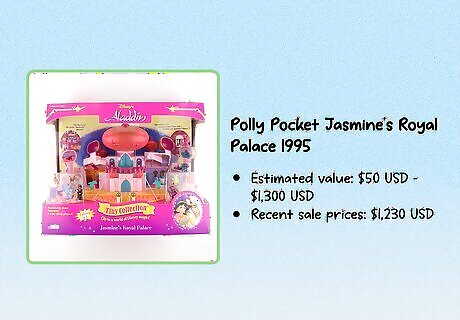 Polly Pocket Jasmine’s Royal Palace When Aladdin came out in 1995, Polly Pocket released a tie-in playset featuring Princess Jasmine’s palace. Polly Pockets are already starting to increase in value, but the limited release also draws in fans of the Disney movie too. Estimated value: $50–1,300 USD Recent sale prices: $1,230 USD