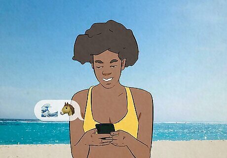Copy and paste emoticons to create a unique seahorse emoji. You can’t simply click a seahorse emoji on your keyboard to send it to a friend, but you can copy and paste special characters to create one! Creators have strategically combined punctuation marks to sculpt beautiful images of seahorses that can be sent via text. Simply head to EmojiCombos.com and copy and paste your favorite one!
