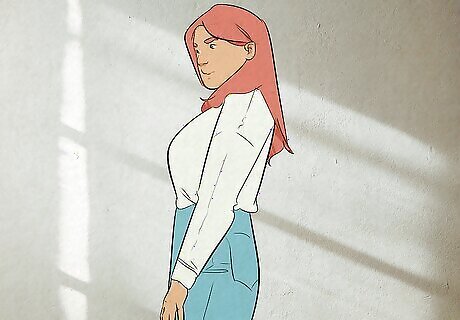 Tuck loose tops or blouses into your bottoms to accentuate your waist. When certified stylist & image consultant Sarah McDonald works with people who have larger breasts, she recommends that they tuck looser blouses or T-shirts into their bottoms. She explains that looser tops can look a little tent-like if your bust protrudes out pretty far compared to the rest of your torso, but tucking your shirt in can really offset that and accentuate your figure.