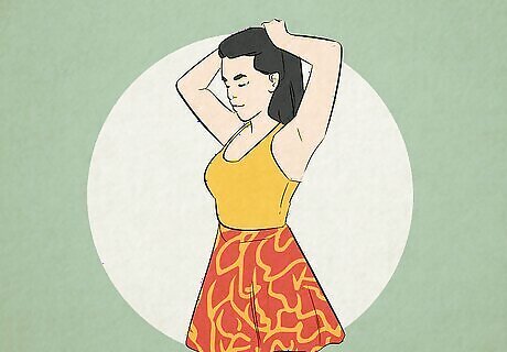 Wear clothes that add volume to the lower half of your body. “Look at your body in two halves, with your waist as the middle. The goal is to create balance between the halves. If your top is wider than your bottom, you want to keep things on top fitted and create more volume on the bottom,” explains fashion stylist and image consultant Nejla Renee. More specifically, image consultant Elle Monus recommends A-line skirts and wide-leg pants to create volume in the bottom third of the body and get a balanced look for those with inverted triangle (A.K.A. “AirPod”) body shapes. Here are a few more examples of outfits that fit this concept: Fit and flare dresses that are fitted in the top half then flare out into a loose or flowy skirt in the bottom half. Casual fitted tanks or T-shirts paired with wide-leg, flared, or bootcut jeans to add volume to your lower half. Fitted tops or blouses paired with flowy skirts of any length (skater, pleated, and tiered styles all work well).
