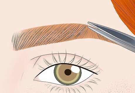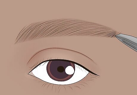 Tweeze your cowlick hairs to make your brows look smoother. Using a high-quality pair of tweezers, pluck away the few rogue hairs making up your cowlick. To make sure your brows look clean and well-defined, you can use a brow pencil to outline the desired shape beforehand, then just pluck any of the hairs outside the outline. Tweeze in the direction of each hair’s growth to make this process as painless as possible. High-quality tweezers will also minimize breakage when you’re trying to pull each brow hair. Keeping your brows groomed regularly with a spoolie brush and light trimming can make cowlicks less noticeable, since longer hairs tend exaggerate stray hairs.